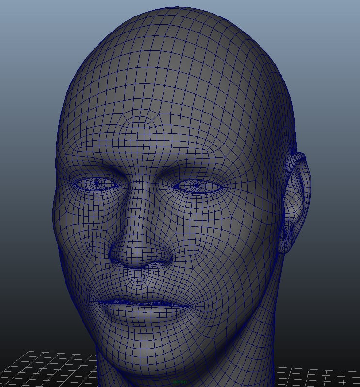 This is a uv unwrapped head model with multiple uv tiles, ready for texturing with programs like Mari or Mudbox. Contains the maya ascii file with proper naming and obj files separated by names.